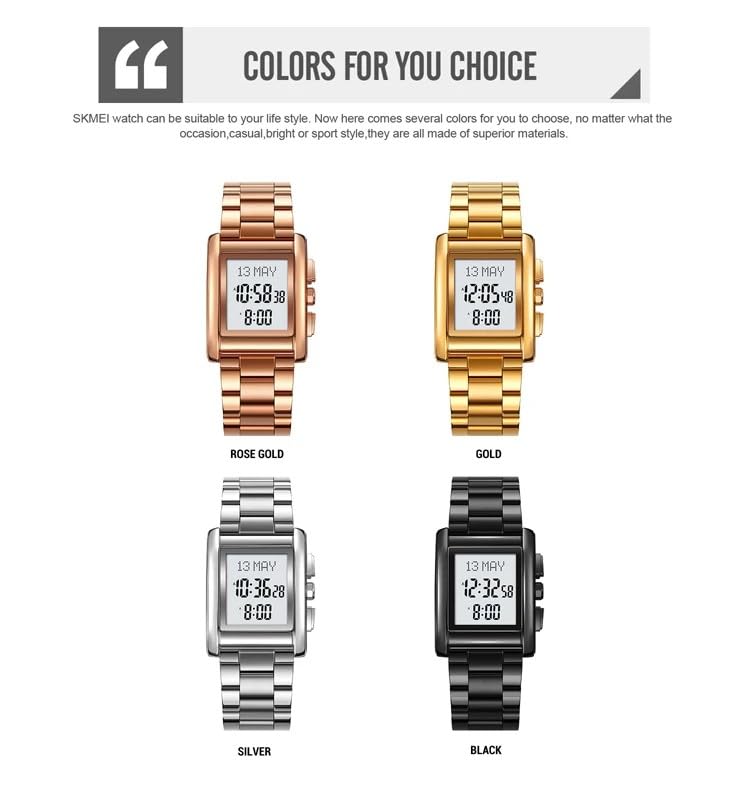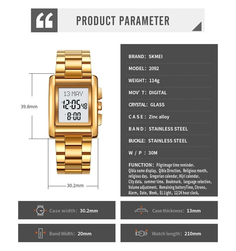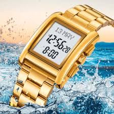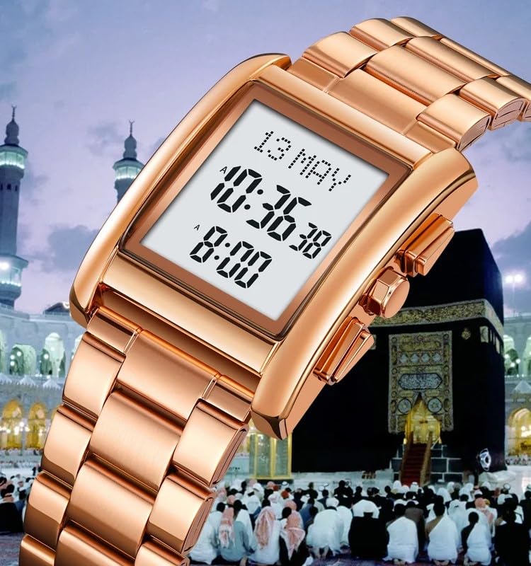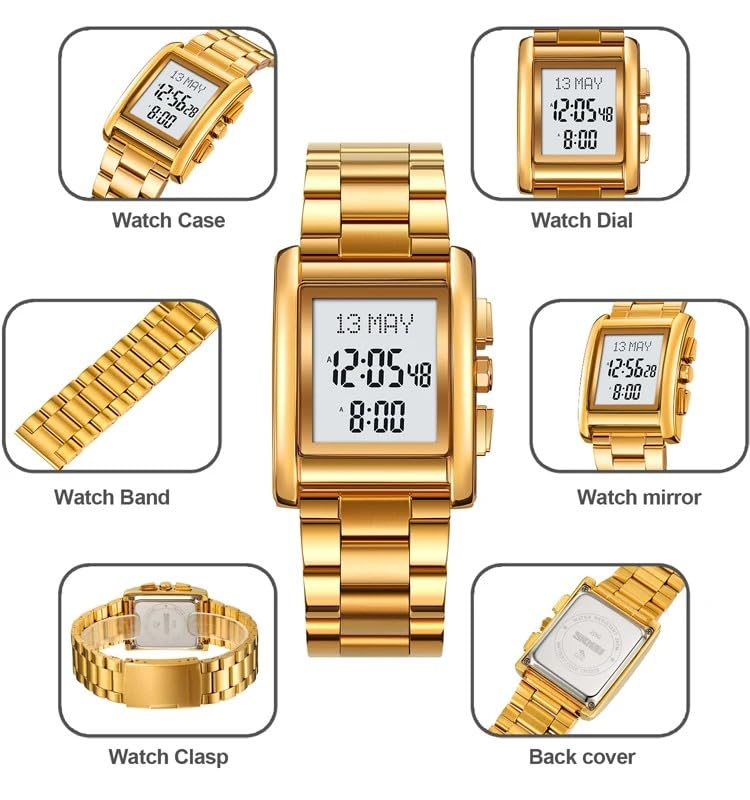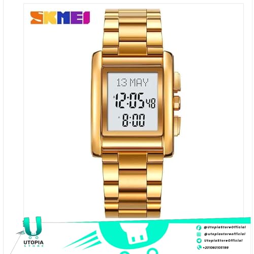 SKMEI - ساعة يد رقمية إسلامية، مواقيت الصلاة، تذكير بالأذان، اتجاه القبلة، تقويم هجري، ذهبي