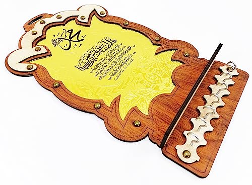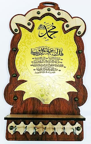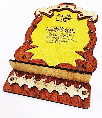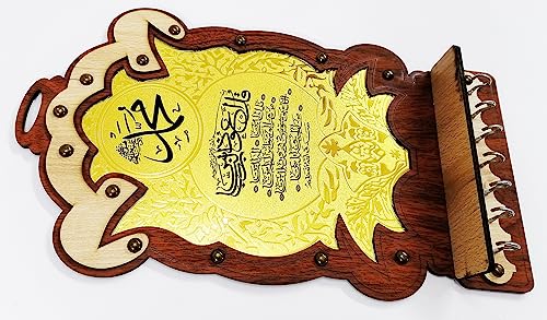 Generic - حامل مفاتيح من الخشب بطابع إسلامي بلون بني غامق وبني فاتح خشبي مزخرف أنيق النحاس