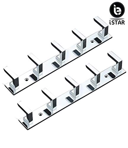 iSTAR - اي ستار شماعات ملابس للحمام مكونة من 5 دبابيس للتعليق على الحائط وغرفة النوم والحمام لتعليق المفاتيح والملابس والمناشف خطاف ستيل عبوة قطعتين فضي الحد الأقصى للوزن الموصى به: 15.0 كيلوجرام