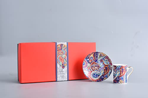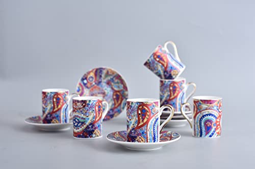 Istekana - طقم فناجين قهوة تركية مع اطباق من البورسلين بتصميم مزخرف 6 قطع الوان متنوعة ايستيكانا