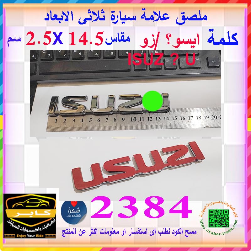 Generic - علامة شعار سيارة ثلاثى الابعاد لصق ( كلمة ايسو؟ / زو ، ISUZ ? / U ، مقاس 14.5 *2.5 سم ، كود : 2384) - كابرمصر 2020