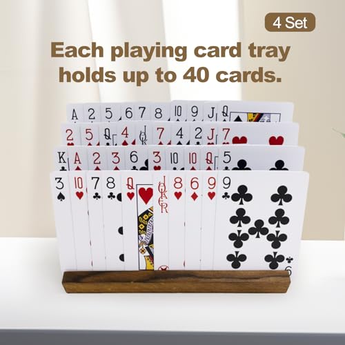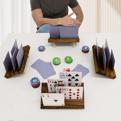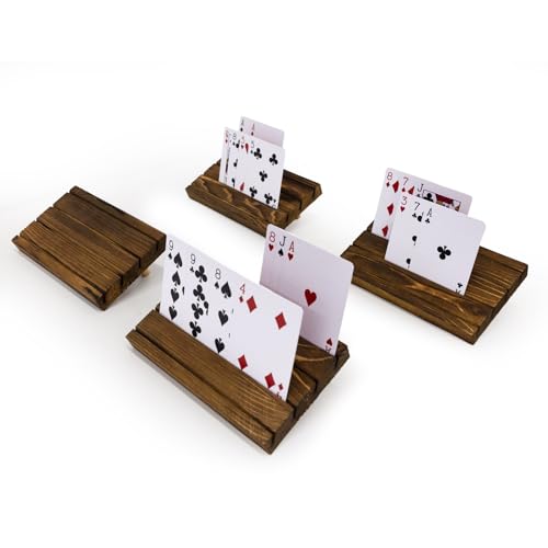 Iswabard - حامل كروت اللعب، مجموعة من 4 قطع من منظم بطاقات اللعب للبالغين والأطفال، حامل كروت خشبي للعبة الورق والاونو والبوكر من ايسوابارد