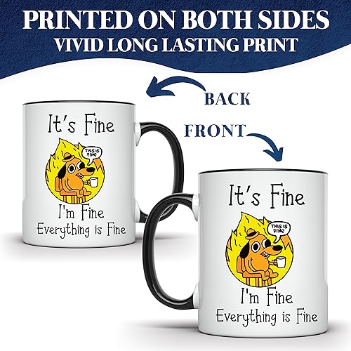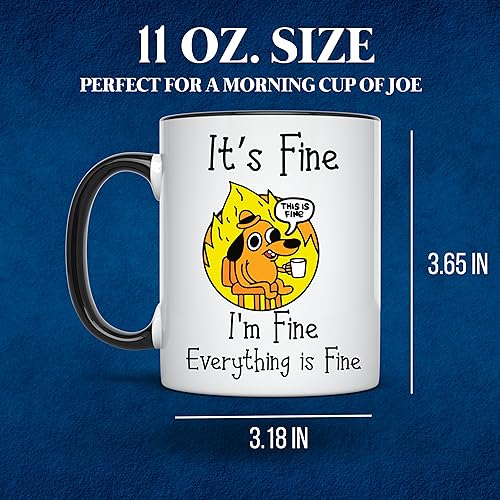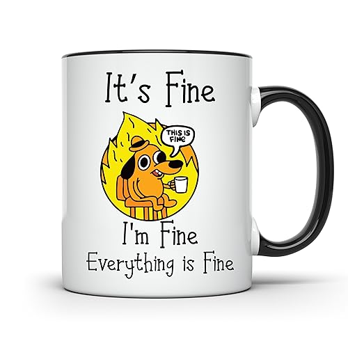KOSOQ - كوب قهوة ساخر مضحك مطبوع عليه عبارة It's Fine I'm Everythings من كوسوك 300 مصنوع السيراميك عالي الجودة في الولايات المتحدة الأمريكية أسود