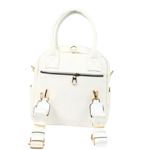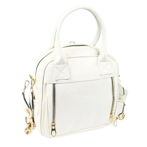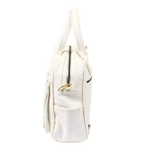 Generic - حقيبة ظهر وكتف جلد إيطالي، ابيض، حجم كبير 35×30 سم، 6 جيوب، إكسسوار ذهبي
