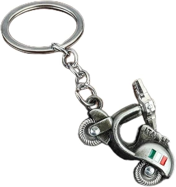 Generic - سلسلة مفاتيح معدنية ثلاثية الابعاد للسكوتر الايطالي - حامل مفاتيح فينتاج مع تفاصيل علم ايطاليا - دلاية انيقة بلون فضي وشنطة اكسسوار لمفتاح السيارة - هدية فريدة لمحبي السكوتر