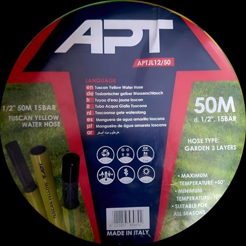 APT - خرطوم مياه إيطالي متين بطول 50 م، وقطر 1/2 بوصة، يتحمل ضغط 15 بار، تصميم ثلاثي الطبقات لتدفق مياه ممتاز