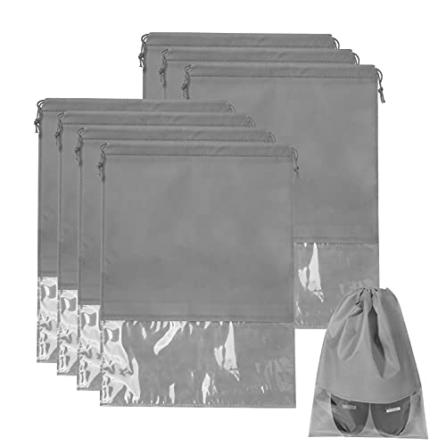 ITME - مجموعة من 8 قطع من شنط احذية السفر الكبيرة المقاومة للماء والغبار شنط تخزين احذية للسفر موفرة للمساحة غير منسوجة برباط مناسبة للرجال والنساء حقائب احذية سفر شفافة (44 × 32 سم/رمادي) من ايتم