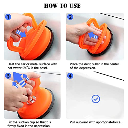 - 【حجم المنتج】: 1 × 4.65 انش يمكن لساحب الانبعاجات رفع وزن 154 باوند؛ كوب شفط 2 × 2.25 انش يرفع أكثر من 75 باوند. تتيح لك مجموعة أدوات إصلاح الانبعاجات المزودة بقاعدة شفط إزالة الانبعاجات والانبعاجات الصغيرة في مناطق محددة من سيارتك
