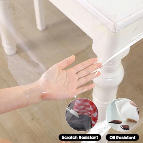 - الحماية: بما أن غشاء الطاولة شفاف مصنوع من بلاستيك PVC النقي، فإنه سيحمي طاولتك من الخدوش والبقع، ولن يتسرب السائل من خلاله لأنه مقاوم للتسرب، لذلك يمكنك تنظيف الطاولة في وقت قصير على الإطلاق للحصول على تجربة نظيفة ومرتبة. كما أنه يساعد على إبقاء الأوساخ والخدوش بعيدًا عند تناول الطعام. يمكن استخدام مفرش الطاولة الشفاف أيضًا كمفرش طاولة أو غطاء خزانة أو غطاء أثاث.