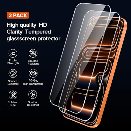 iVoler - جراب موبايل شفاف 3 في 1 مصمم لموبايل آيفون برو ماكس 6.9 بوصة 2025، مع واقي شاشة من الزجاج المقوى لحماية كاملة للكاميرا وجراب موبايل صلب مقاوم للصدمات من اي فولير، شفاف، قطعتان