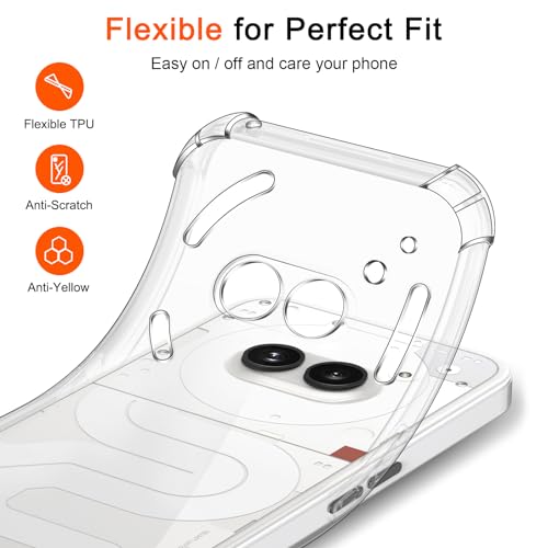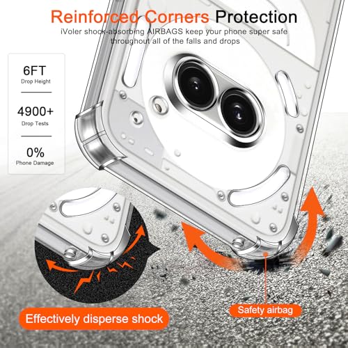 iVoler - جراب 3 في 1 لموبايل نوثينج فون 2a مع قطعتين من غشاء الزجاج المقوى من اي فولر، جراب شفاف مضاد للصدمات، واقي رقيق من السيليكون الناعم والبولي يوريثين الحراري