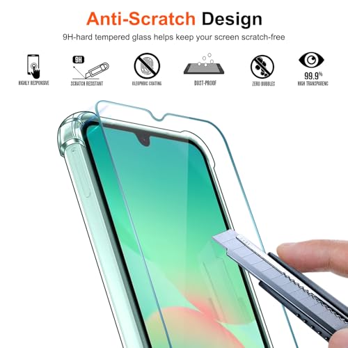 iVoler - I فولر جراب 3 في 1 لموبايل سامسونج جالاكسي A26 شبكة الجيل الخامس 5G مع قطعتين من طبقة الزجاج المقسى، حافظة شفافة مضادة للصدمات، حافظة واقية من السيليكون الناعم والبولي يوريثين الحراري