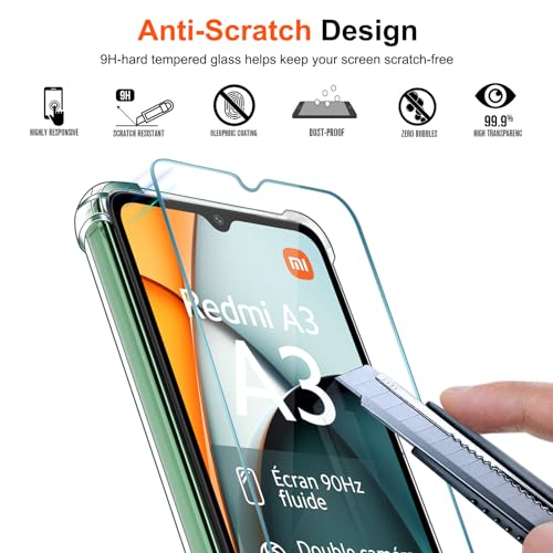 - [التوافق] --- متوافق مع شاومي ريدمي A3. سهولة الوصول إلى جميع عناصر التحكم والميزات؛ فتحات مثالية لمكبرات الصوت والكاميرا والمنافذ الأخرى. غطاء من 3 قطع من الزجاج المقوى يوفر حماية كاملة للجسم بزاوية 360 درجة.
