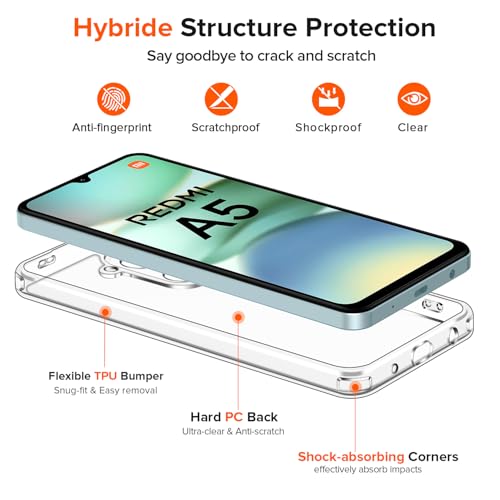iVoler - جراب موبايل شفاف HD مضاد للاصفرار لموبايل شاومي ريدمي A5، مع حماية من الدرجة العسكرية، مضاد للصدمات شفاف ورفيع ومضاد للخدش من البولي كربونات من ايفولر