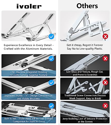 iVoler - I فولر حامل لاب توب قابل للتعديل من الالومنيوم قابل للتعديل، حامل كمبيوتر محمول مريح وقابل للطي متوافق مع ماك بوك اير برو، فضي ستارلايت