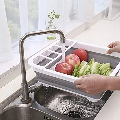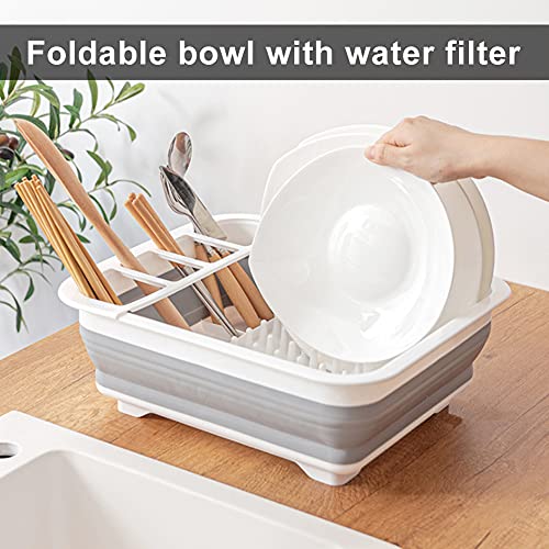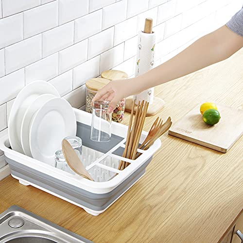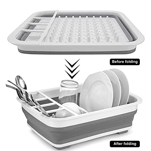 Spaceshoop - رف تجفيف الاطباق قابل للطي ومحمول ومنظم لادوات المائدة للمطبخ وترابيزة التخييم والسيارات الترفيهية من ايفولكس، البولي بروبلين، رمادي