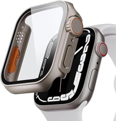Generic - جراب حماية أمامي من هجين البولي كربونات لساعة اي ووتش سيريز 9/8/7 مقاس 44 ملم لتحويل الساعة لمظهر ساعة الترا 49 ملم (لون تيتانيوم جولد + برتقالي)