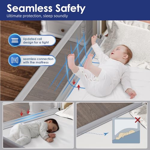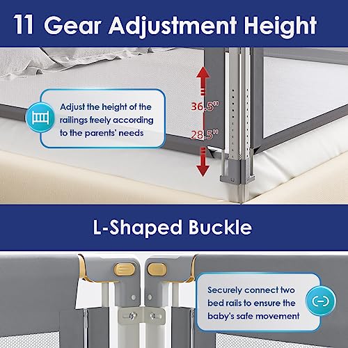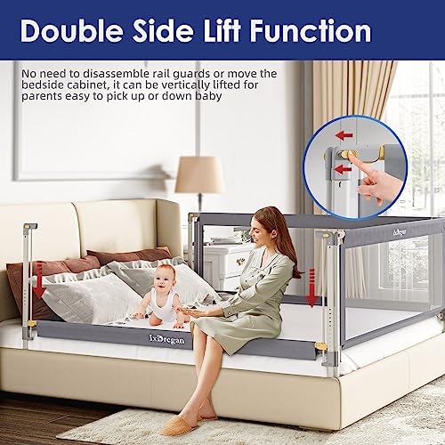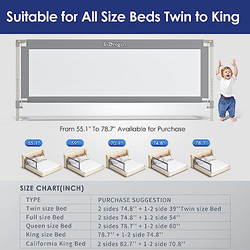 Ixdregan - حاجز سرير للأطفال الصغار، قضبان سرير مزدوجة الجانب بارتفاع قابل للتعديل لسرير كوين، مصنوع من ألياف امنة وطبيعية قابلة للغسل، لحاجز سرير كامل الحجم من ايكسدريجان (رمادي، قطعة واحدة، 150 سم)
