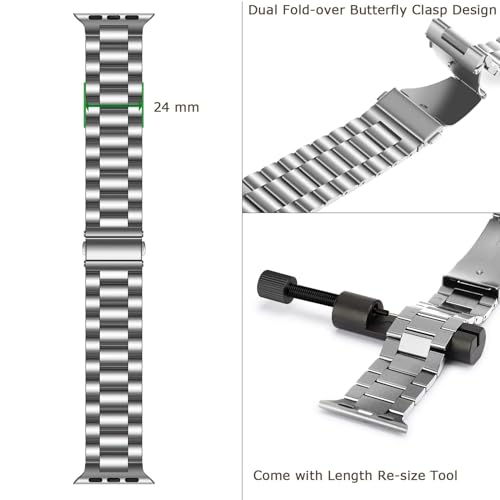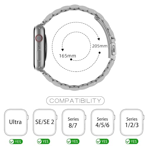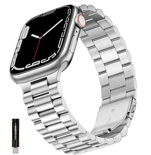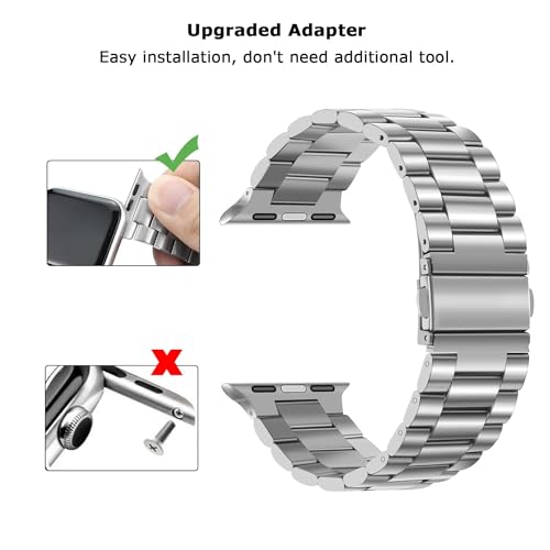 IXTRA - سوار من الستانلس ستيل السميك الصلب من ايكسترا متوافق مع ساعة ابل 38 ملم 40 ملم 41 ملم 42 ملم 44 ملم 45 ملم 49 ملم، سوار معدني للأعمال قابل للتعديل لساعة اي ووتش 9 8 7 6 5 4 3 2 1 SE/SE2/الترا 1 2