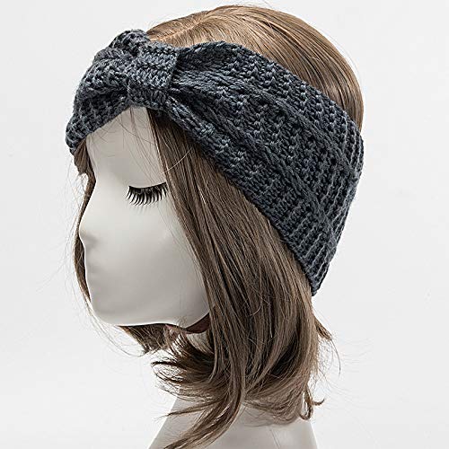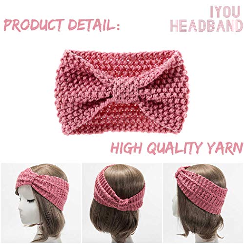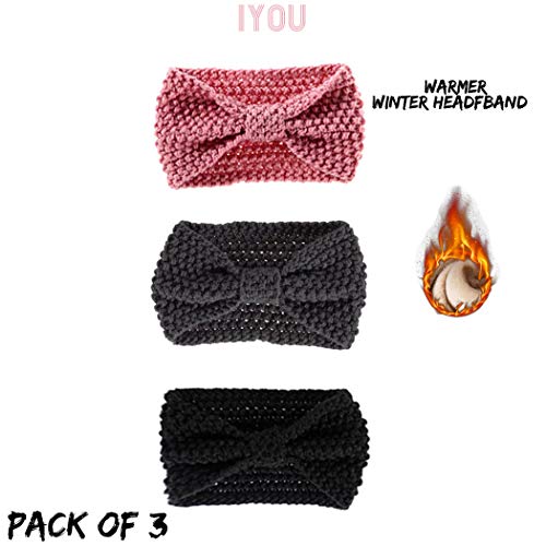 IYOU - شريط رأس شتوي محبوك للنساء من الكروشيه، أربطة للرأس ملفوفة سوداء لتدفئة الأذن للنساء والبنات (عبوة من 3 قطع)