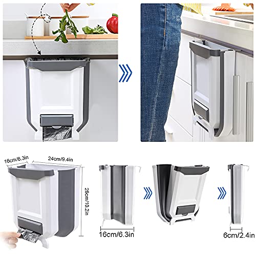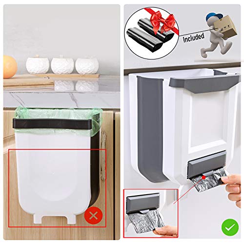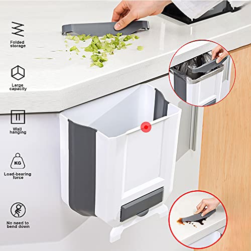 IYOYI - صندوق مطبخ بحامل يثبت على الحائط صناديق دولاب المطبخ سلة مهملات قابلة للطي تحت الحوض لباب الخزانة والتخييم والسيارة مع درج أكياس قمامة 9 لتر أبيض من ايوي