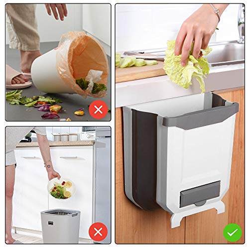 - ✅【مادة ممتازة】سلة مهملات الطعام القابلة للطي مصنوعة من البولي بروبيلين والمطاط الحراري المرن عالي الجودة، آمنة ولا طعم لها ومتينة. يمكنك طيها حسب الرغبة، ولا يزال من الممكن إعادتها إلى شكلها الأصلي دون أن تتشوه. مع مقبض تعليق أوسع وعالي الجودة، لا داعي للقلق بشأن سقوط سلة المهملات من دولاب المطبخ. يمكنك استخدام سلة المهملات الصديقة للبيئة لفترة طويلة.