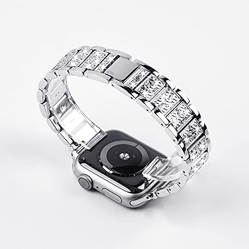 IZONE - سوار فاخر من الفولاذ المقاوم للصدأ أنيق وراقي متوافق مع ساعة آبل سلسلة 2 3 4 5 6 7 8 9 الترا (42 ملم/44 ملم/45 ملم/الترا، لون فضي)