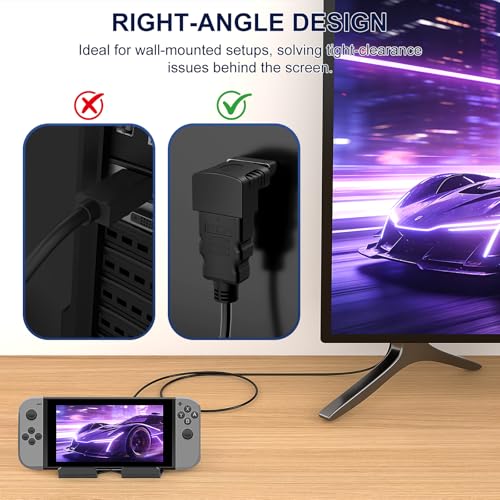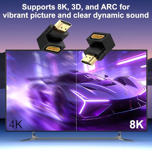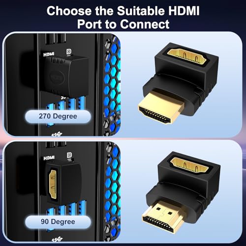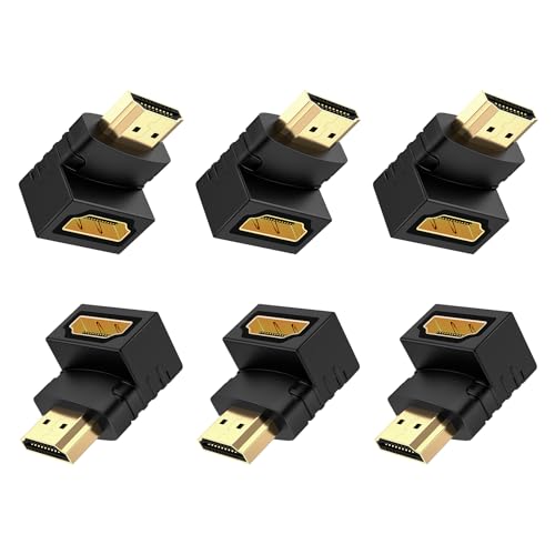 J&D - محول HDMI 90 درجة و270 درجة مطلي بالذهب بزاوية قائمة ذكر إلى أنثى محول HDMI 90 إلى 270 درجة، (عبوة من 6 قطع)