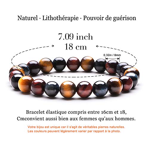 J.Fée - سوار خرز كريستال طبيعي مقاس 8 ملم لعلاج القلق والمساعدة على الاسترخاء، مثالي كهدية رائعة, 8 inches