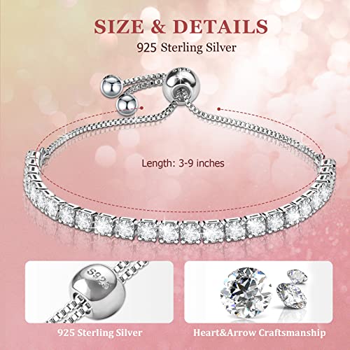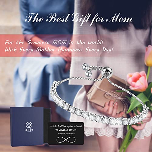 J.Fée - سوار من الفضة عيار 925 للنساء قابل للتعديل تنس مقاس 3 ملم كريستال مرصع بحجر الزركونيا بجودة 5A ورق