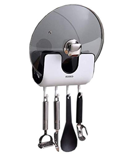 ECOCO - J&J90 - منظم غطاء وعاء/ حامل وعاء - 2 في 1 - رف لوح التقطيع - ملعقة مرنة/ شماعة مغرفة مثبتة على الحائط - سهلة التركيب - قوي أبيض