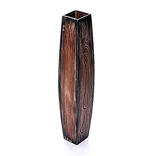 J.S.W - فازة ديكور للمنزل خشبي - 70 سم - بني