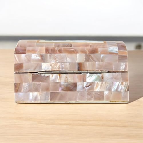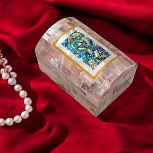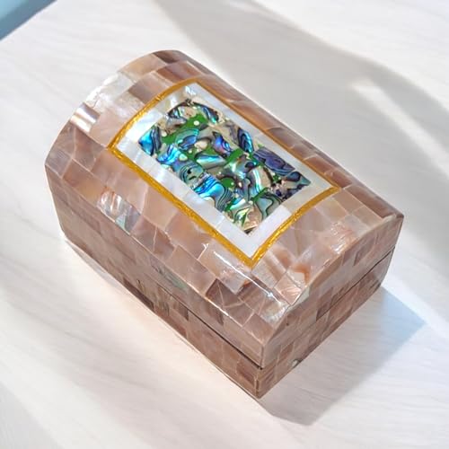 Generic - صندوق مجوهرات J115 مصنوع يدويًا من عرق اللؤلؤ وأذن البحر - جزء علوي مقبب