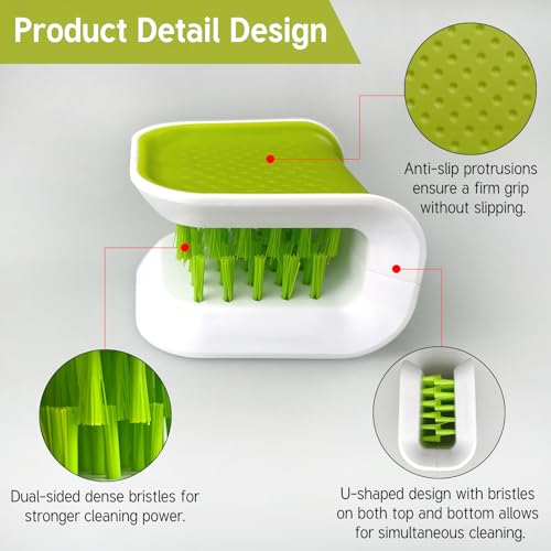 - تتميز هذه الفرشاة بتصميم فريد من نوعه ملفوف، تنظف كلا جانبي أدوات المائدة في وقت واحد، مما يوفر الوقت ويعزز كفاءة التنظيف.