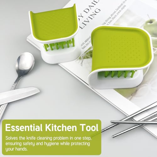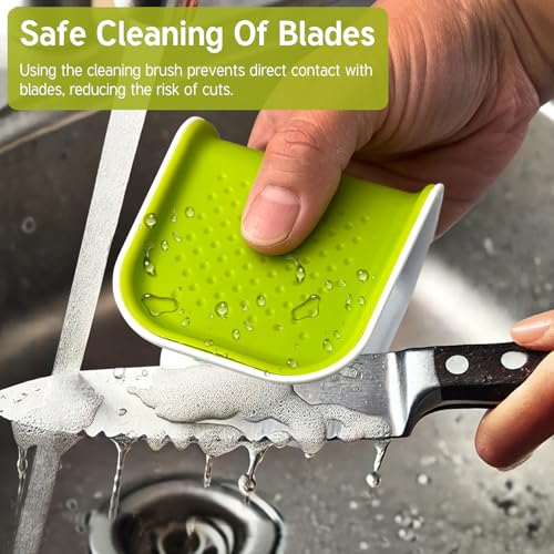 Jaasuee - فرشاة بليد لغسل المطبخ من جاسوي - فرشاة تنظيف السكاكين وادوات المائدة بتصميم ملتف لفرك فعال وقبضة غير قابلة للانزلاق، اخضر