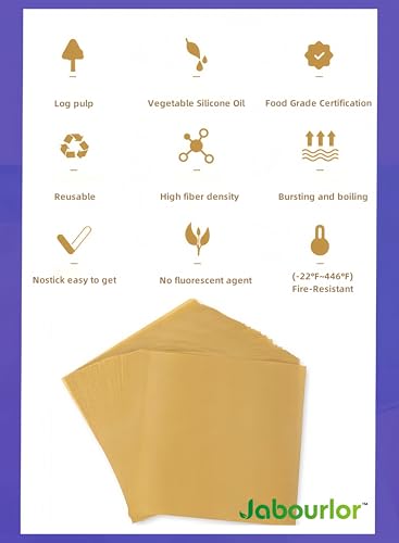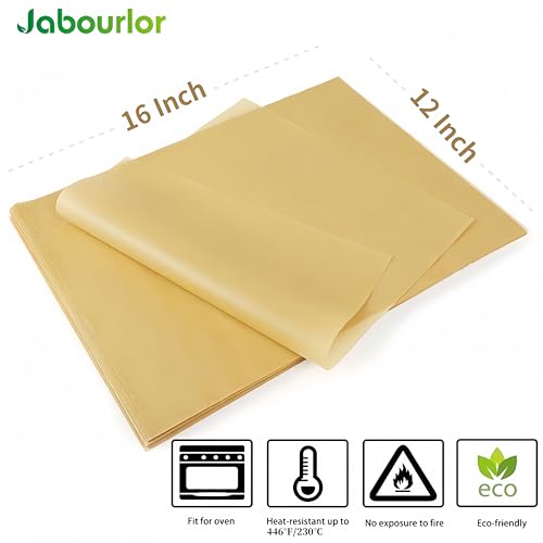 JABOURLOR - ورق برشمان غير مبيض للخبز من جابورلور - 30 سم × 40 سم، ورق برشمان غير مبيض مقطوع مسبقًا للطبخ والشواء والخبز - 100 ورقة