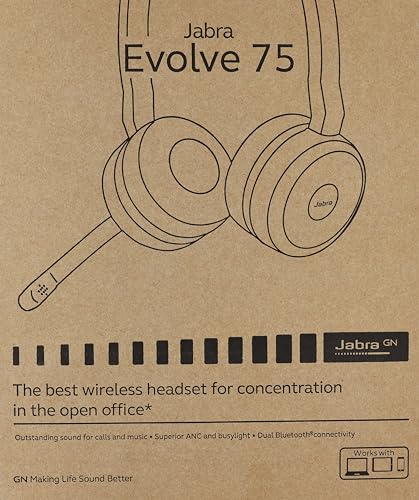 Jabra - سماعة جابرا ايفولف 75 رأس لاسلكية مع دونجل من جبرا 7599-832-109 - اسود، على الأذن