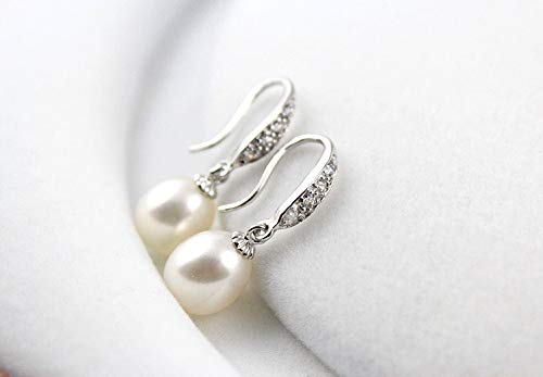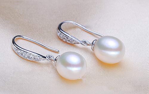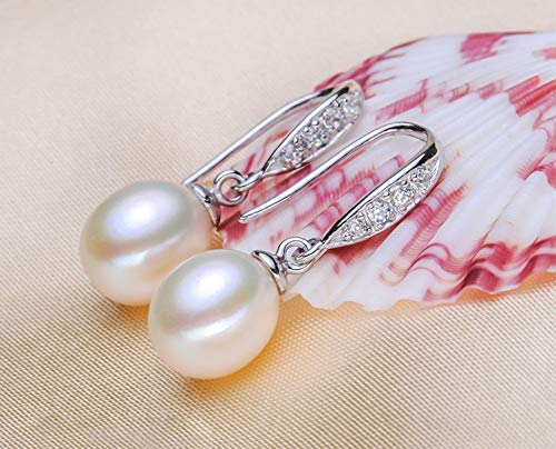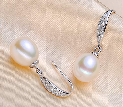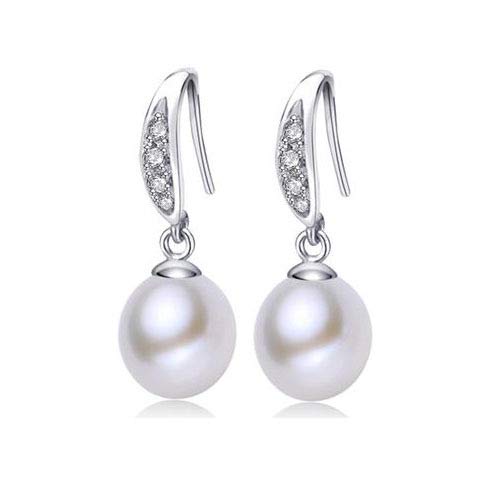 JACA - حلقان مزينة باللؤلؤ من الفضة الاسترلينية عيار 925 بتصميم متدلي المياه العذبة متدلية اللؤلؤ مقلد معدن لآلئ جاكا متعدد الألوان للنساء
