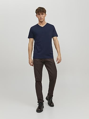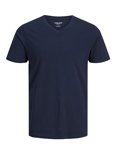JACK & JONES - جاك اند جونز تيشيرت اساسي باكمام قصيرة وقبة V للرجال من جيه اي اورجانيك متوفر دائما في المخزون