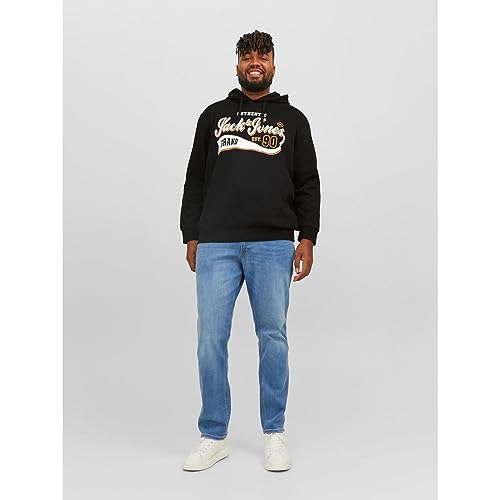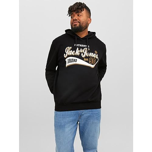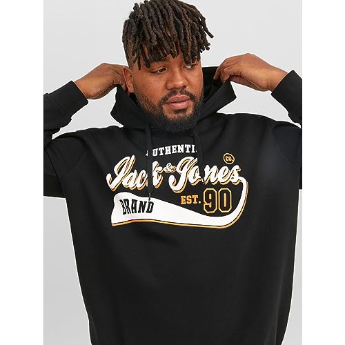 JACK & JONES - سويت شيرت بغطاء للرأس وشعار للرجال من جاك اند جونز، باللون الاسود، مقاس 6 اكس لارج