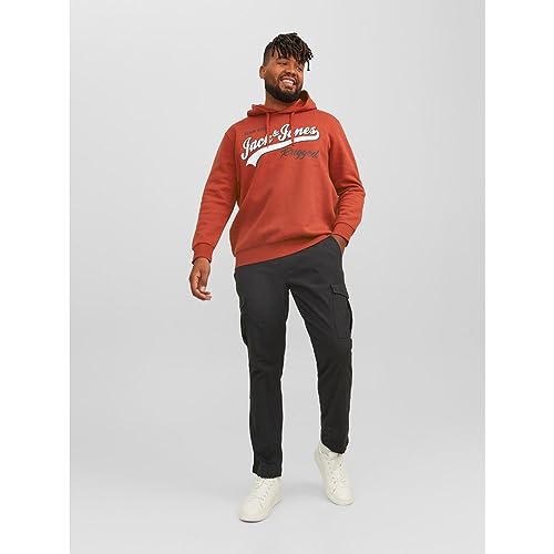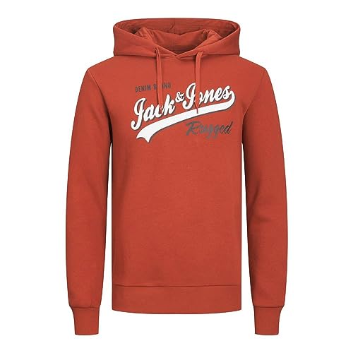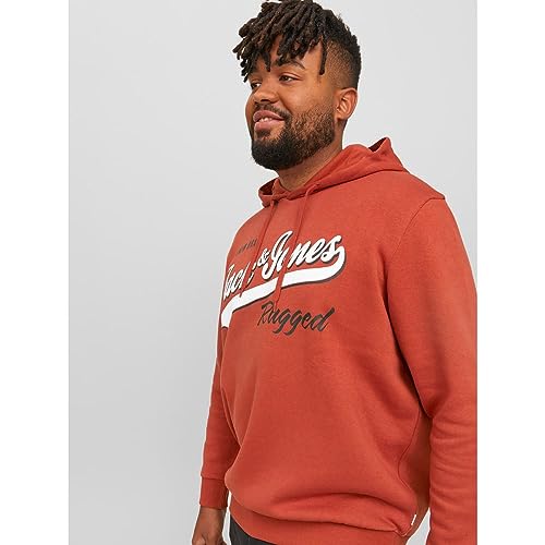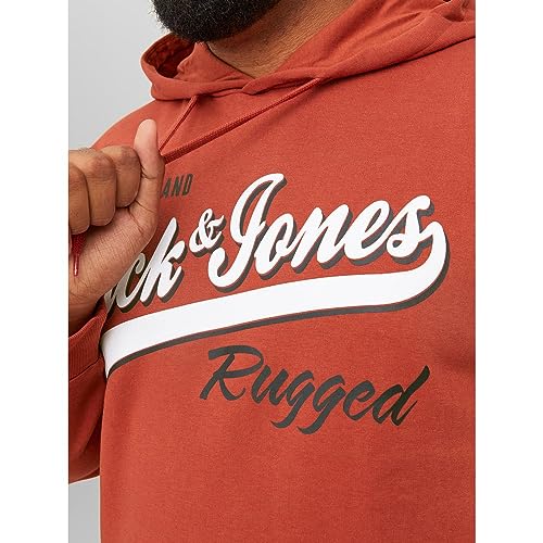 JACK & JONES - سويت شيرت بغطاء للرأس مزين شعار للرجال من جاك اند جونز، بلون سينابار، مقاس 5 اكس لارج 5XL