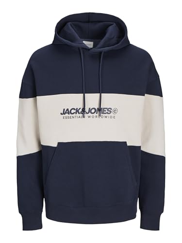 JACK & JONES - سويت شيرت بغطاء رأس للرجال من جاك اند جونز، قصة فضفاضة كبيرة