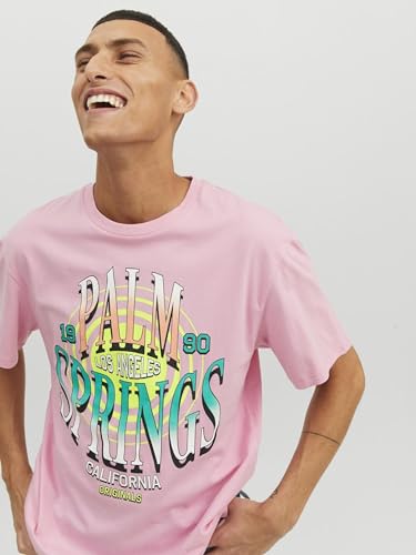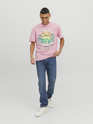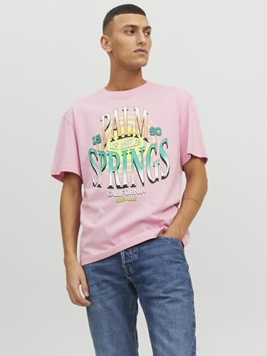 JACK & JONES - تيشرت سامرسيتي بأكمام قصيرة ورقبة دائرية ضيقة للرجال من جاك اند جونز