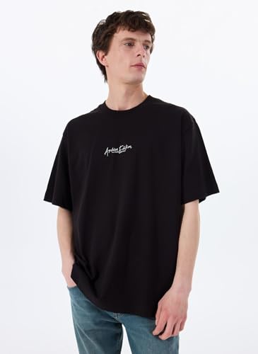 JACK & JONES - تيشرت كروم للرجال بأكمام قصيرة ورقبة دائرية ضيقة بتصميم مطبوع بشعار فضي من جاك اند جونز، (عبوة من قطعة واحدة)