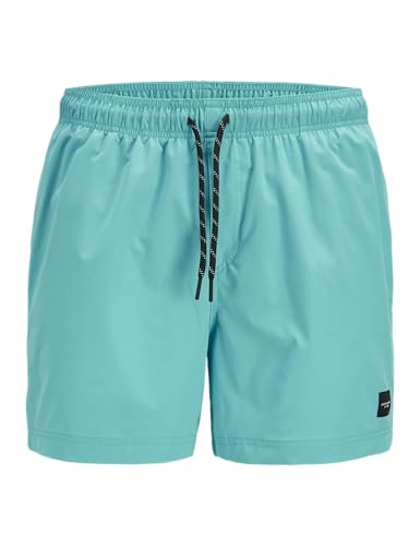 JACK & JONES - شورت سباحة كارجو ماوي بطبقة مزدوجة وحزام خصر للرجال من جاك اند جونز، لون سادة، (قطعة واحدة)