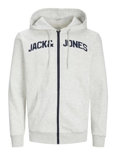 JACK & JONES - سويت شيرت مع غطاء رأس رو بسوستة للرجال من جاك اند جونز، لون أبيض ميلانج، مقاس اكس اكس اكس اكس اكس لارج 5XL