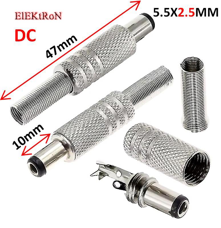 - عدد قطعة واحدة من جاك باور معدن 1 قطعة 2.5مم DC Jack Metal Male Port Socket Repair Power Barrel Plug Connector With Black Head 5.5x2.5mm Replacement Adapter
