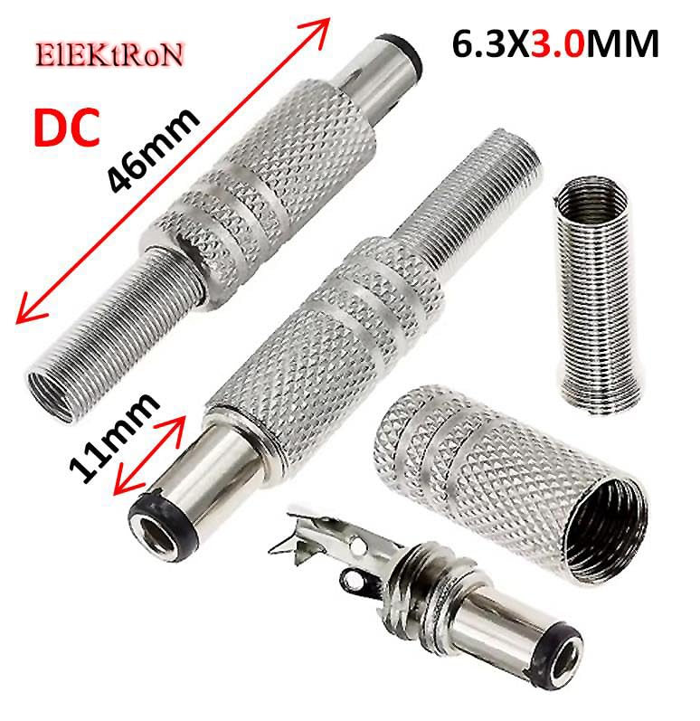 - عدد قطعة واحدة من جاك باور معدن 1 قطعة 6.3مم في 3مم DC Jack Metal Male Port Socket Repair Power Barrel Plug Connector With Black Head 6.3X3.0mm Replacement Adapter