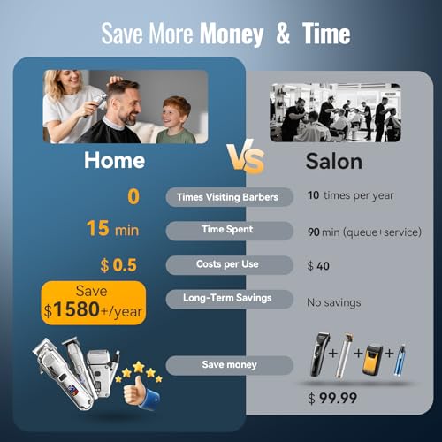 - مجموعة ماكينة حلاقة وتشذيب الشعر الاحترافية 4 في 1: قص الشعر، نحت اللحى، حلاقة بسلاسة وتقليم شعر الأنف - وفر 1580+/سنة مقابل صالونات التجميل! نتائج من درجة الحلاقة في المنزل.