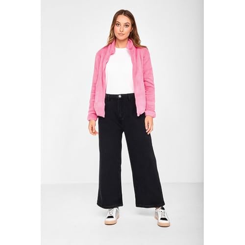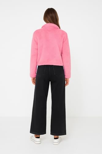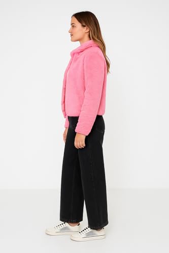 Generic - جاكيت تيدي من فرو صناعي بجيب مزدوج، جاكيت فرو سوستة كاملة وبجيوب جانبية للنساء، لون وردي